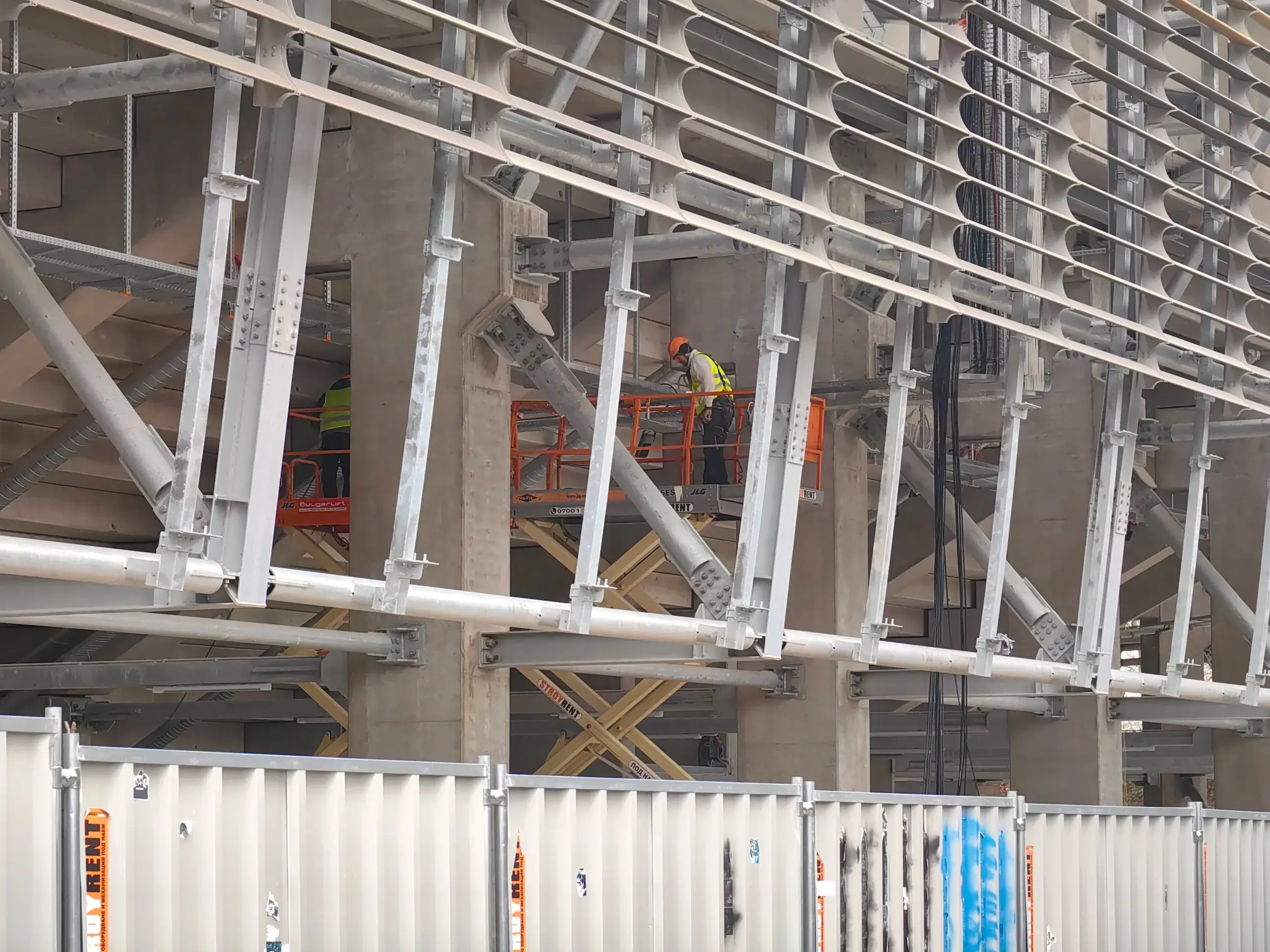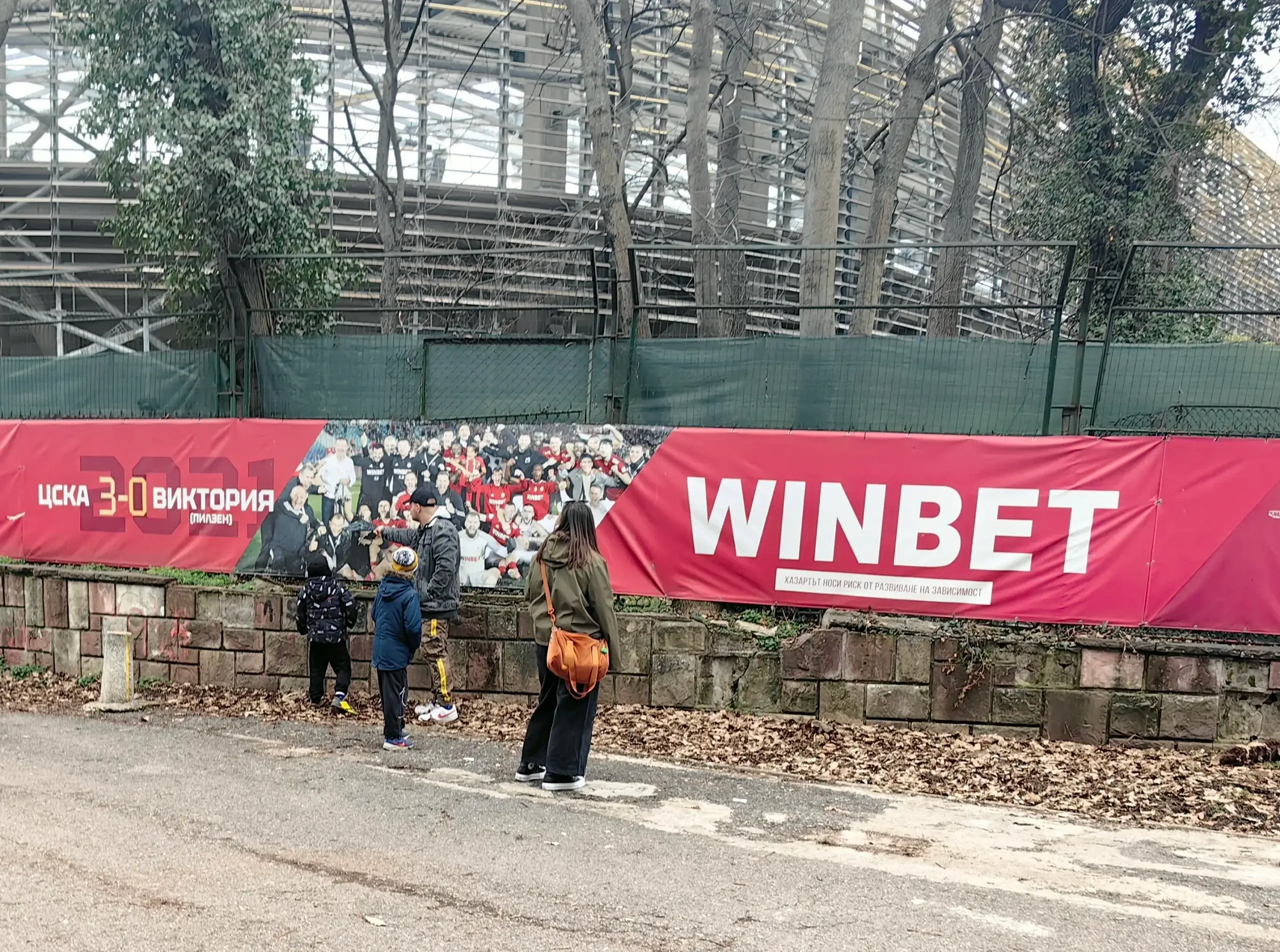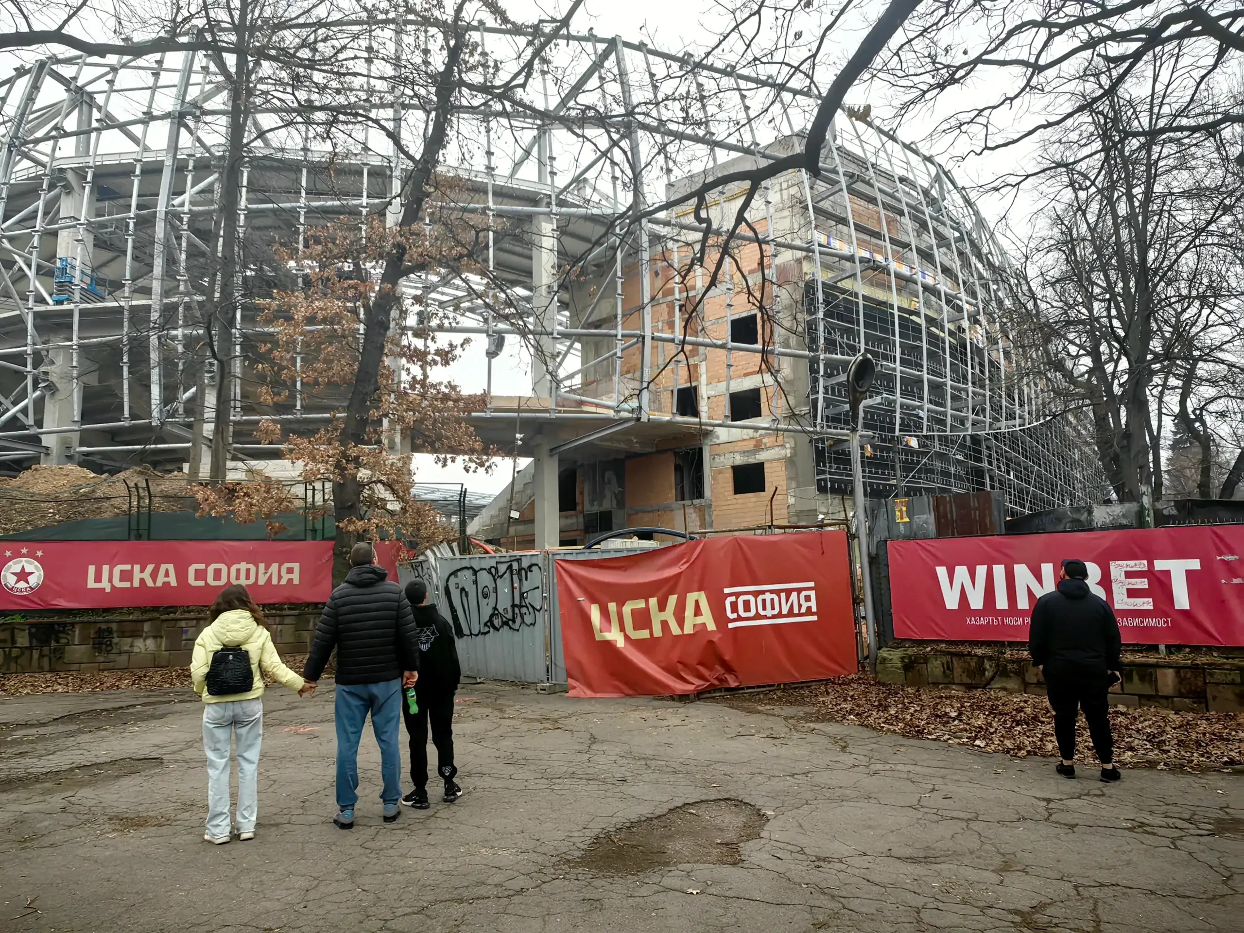 Колко много хора работят на строителната площадка в събота, дори на 14 февруари?! Не съм сигурен дали има проект в България, който се движи с подобни ударни темпове. Лека-полека правя завоя край мястото на някогашния митичен вход на „Г“ сектор. Очите ми попадат на мъж, който посочва на двете си деца и половинката си футболист на ЦСКА. Спрели са да разгледат брандирана част от огражденията. Както казах, всеки се спира.