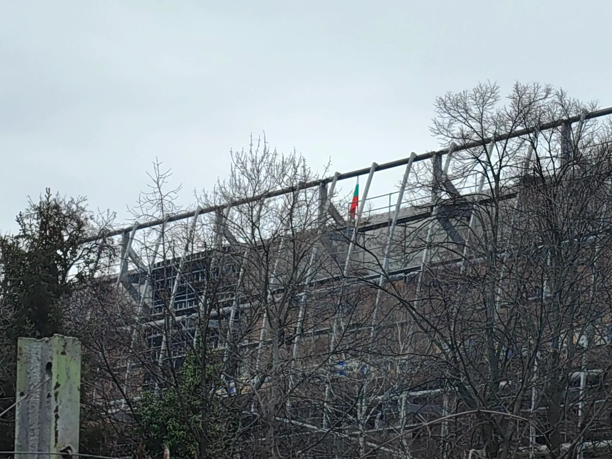 Още няколко продължителни спирания, редувани с няколкостотин крачки и стигнах до входа на строителната площадка край „А“ сектор. Обръщайки се за последно назад, видях да се вее непоколебимо българския трибагреник – точно всредата на централната трибуна. Фасадата добива все по-завършен вид.